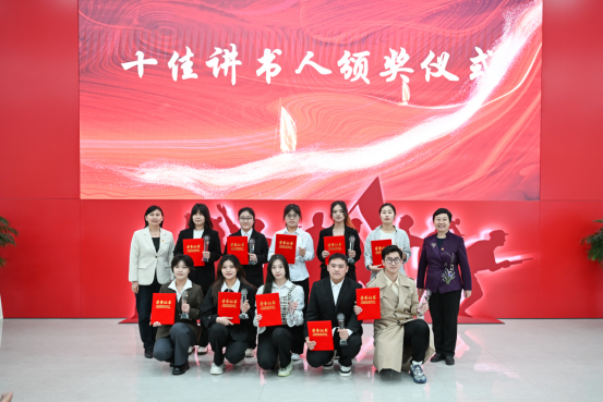 党委书记朱晓梅、党委副书记孙玉香为学校“校园十佳讲书人”评选活动获奖学生颁发奖杯与荣誉证书,并勉励同学们要爱读书、多读书、善读书,用优秀的文化滋养心灵、塑造品格、强化担当,接好时代的“接力棒”。