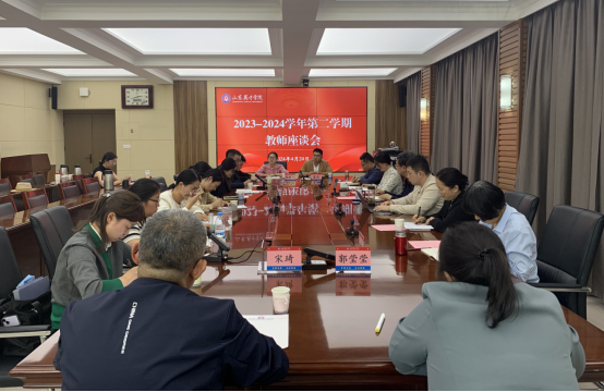 本次座谈会教师代表由新教师、青年教师、中年教师、专业负责人、课程负责人组成。他们代表学院教师,围绕专业建设、教师教科研建设、教学能力提升以及学校教学管理等方面工作提出了有针对性的意见和建议;在交流的过程中,分享了个人教学和学院管理方面的工作经验。