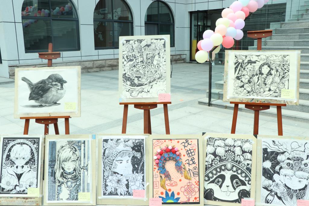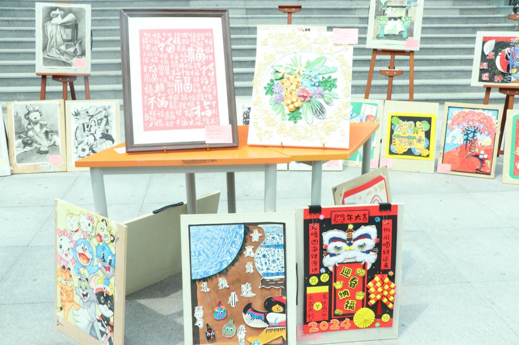 主题展览区域,由实践技能教研室精心策划,聚焦展示学生优秀成果。这里,衍纸、剪纸、素描、纸浆画等艺术作品琳琅满目,每一件都凝聚了学生们的汗水和创意,充分展现了他们的艺术素养和学习成果。展览布置新颖独特,既贴合了师范生的教育情怀,又彰显了师德的传承。