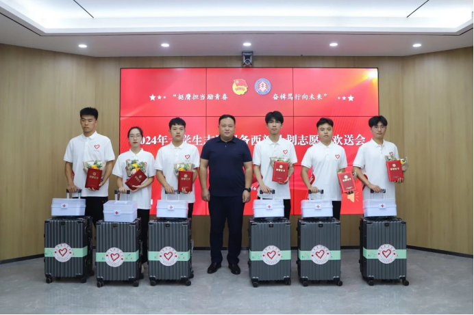 会议第一阶段为大学生志愿服务西部计划志愿者欢送会。