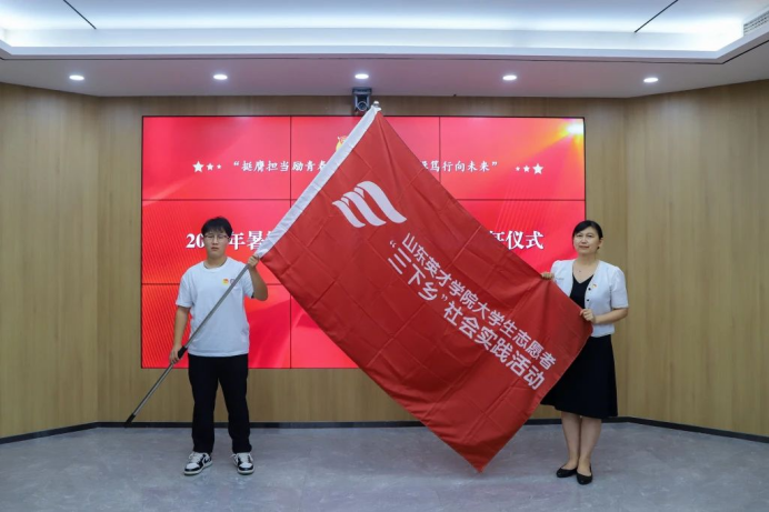 党委副书记孙玉香为2024年暑期社会实践团代表授旗。