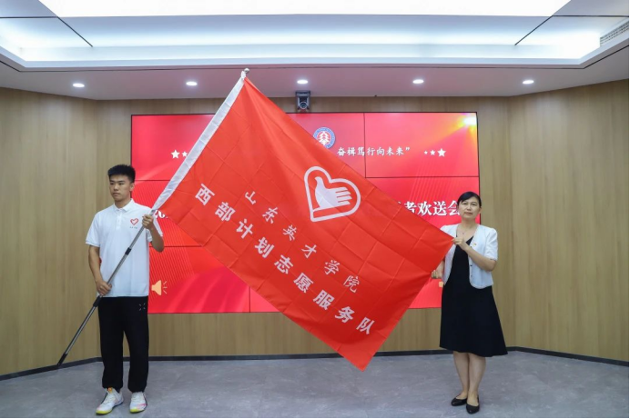 党委副书记孙玉香为西部计划志愿服务团授旗。