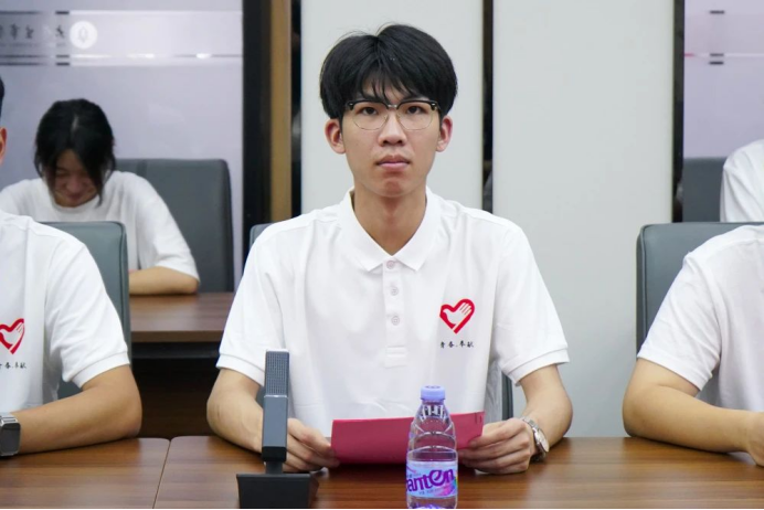 社会实践重点团队代表黄奕锟发言,他承诺将会明确实践目标,真正做到“在实践中学习,在学习中奉献”;在社会实践中坚定理想信念,厚植家国情怀;在社会实践中培养“吃苦耐劳”的精神,锻炼自己的意志,增长才干。