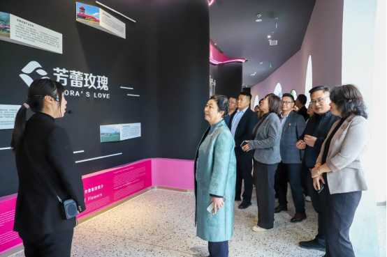 在芳蕾田园综合体,商学院党总支一行观看了由平阴县委宣传部监制的宣传片,进一步了解了平阴玫瑰文化。考察参观过程中,商学院党总支书记赵坤与山东玉带玫乡文化旅游开发有限公司总经理王辉就平阴玫瑰文化研究与宣传、赋能研学项目开发、新媒体直播电商等方面的相关合作与推进计划进行了深度交流,一致同意深入推进党建引领促进乡村产业振兴,为平阴县玫瑰镇乡村振兴发展提供智力支撑和人才保障,共同谱写新时代乡村振兴新篇章。