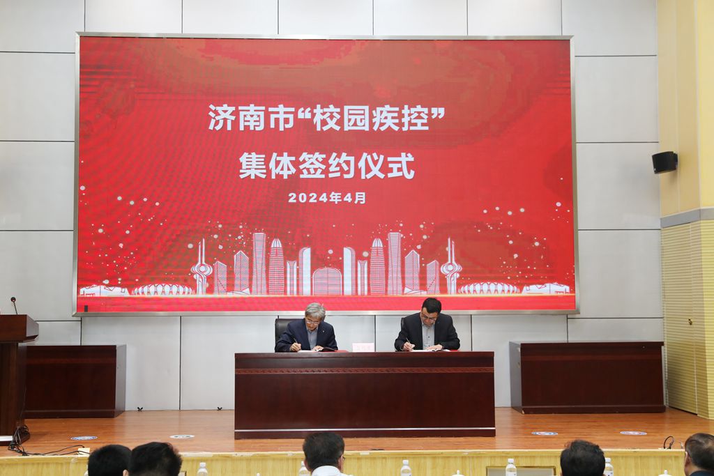 后勤处处长董攀在济南市“校园疾控”集体签约仪式上签约