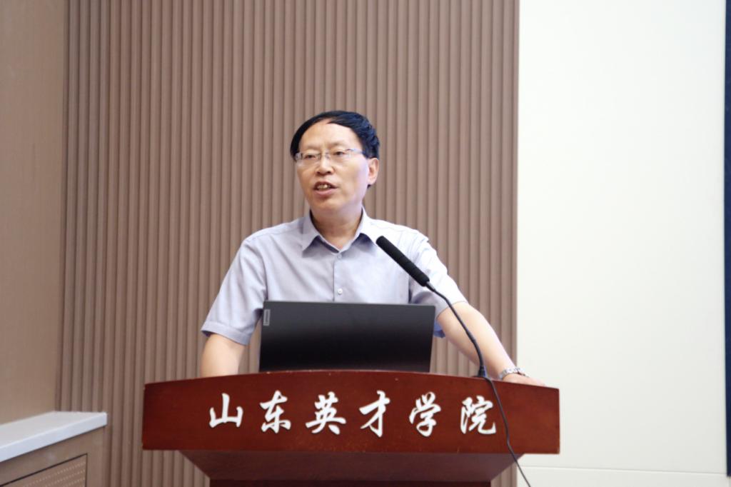 副校长崔奎勇围绕《加快提升履职能力 赋能学校高质量发展》展开讲解,他介绍了学校高水平应用型大学的发展愿景与“以贡献为本”“产教融合”等办学理念,明确提出应用型高校教师应具备的“目标凝练能力”“策略分析能力”“AI大模型应用能力”等10种关键能力,为新教师的专业成长指明了实践路径。他鼓励新教职工积极融入学校,不断提升自身能力,善于运用AI技术,共同推动学校高质量发展。