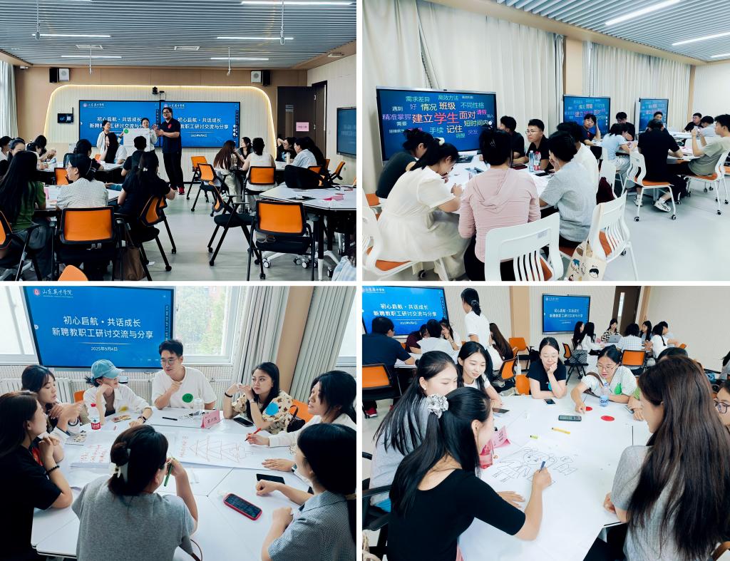 参观结束后,新教师进入智慧教室开展分组研讨,围绕“如何做学生喜爱的老师、辅导员或行政服务人员”“落实立德树人的路径”等议题展开热烈交流。现场思想碰撞、共识凝聚,展现出新聘教职工的教育热情与思考深度。