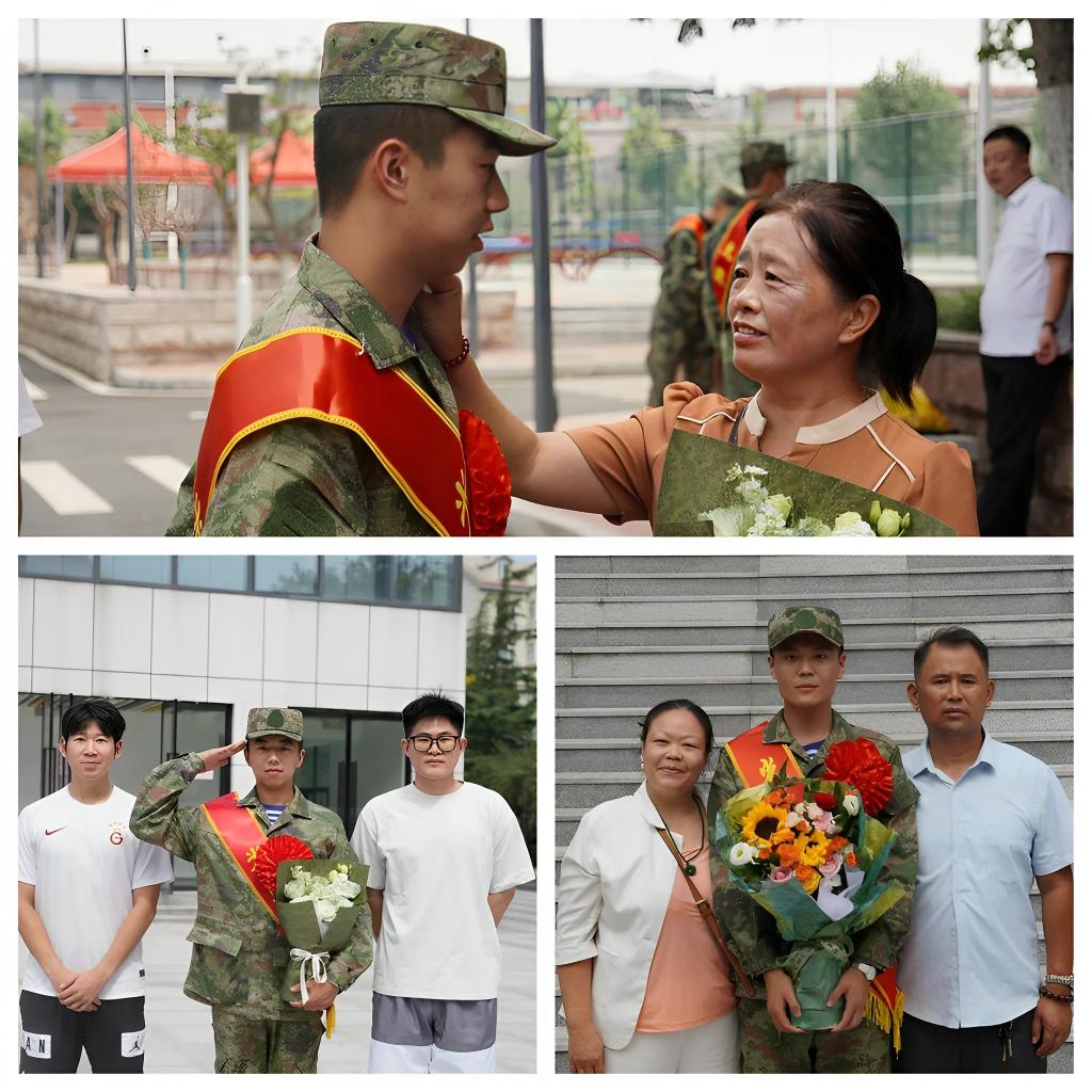 党委副书记、工会主席孙玉香接受了入伍学生代表向学校赠送的锦旗。入伍学生代表王坤在发言中感谢学校培育,表示将以坚强意志投身训练,为实现中国梦、强军梦奉献力量。入伍学生家长代表马朝福也发言,希望同学们在军营刻苦训练,为母校增光添彩。