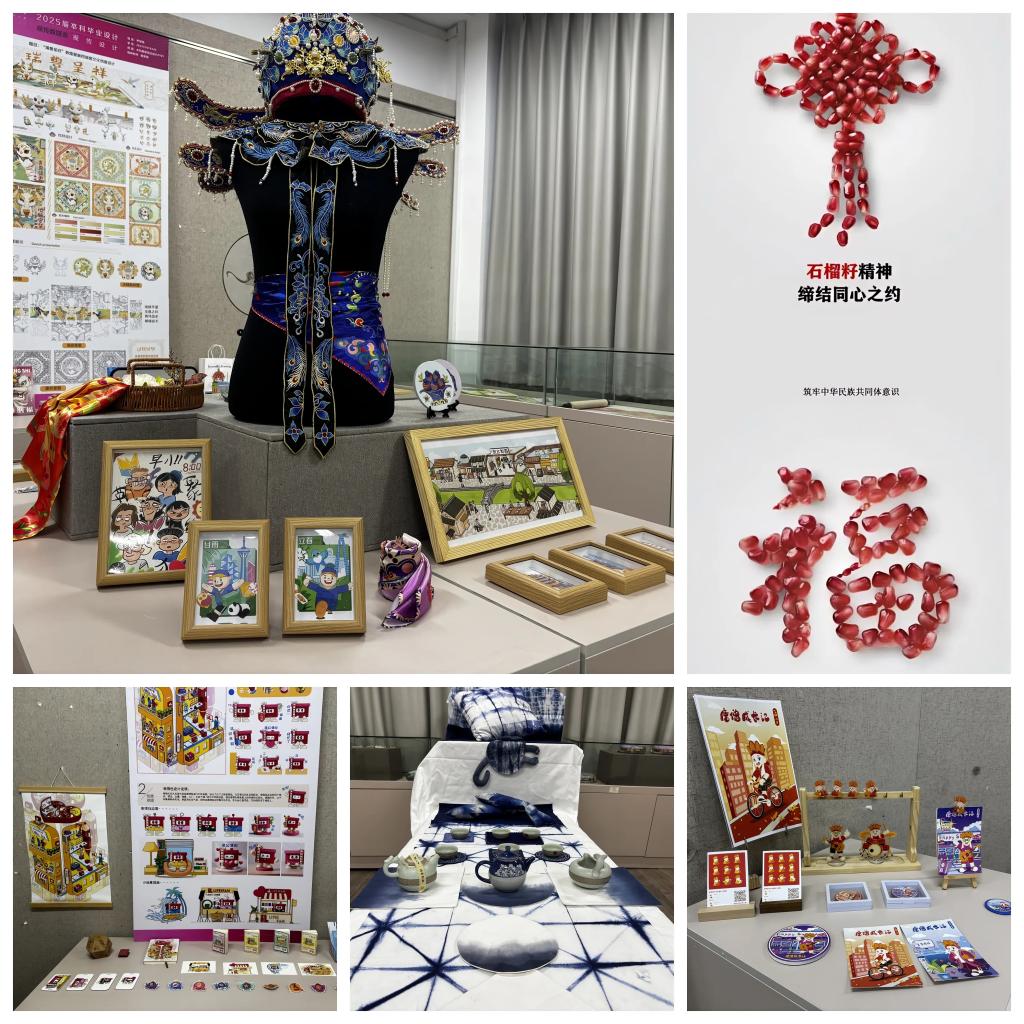 本次文创作品展既是学校推动“课程思政”与专业教育深度融合的成功实践,也有效搭建了一个融文化传承、思政教育与创新实践于一体的平台,让学生在创作过程中深化了对中华民族共同体的认同,提升了文化自信与使命担当,更营造了“中华民族一家亲,同心共筑中国梦”的积极氛围,生动展现了英才学子昂扬的精神风貌。学校将以此次活动为契机,继续探索文化育人新路径,鼓励学生立足专业,深耕传统文化,为铸牢中华民族共同体意识贡献青春力量。