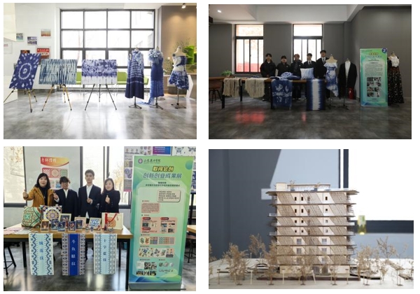 设计学院创新创业成果以多元化的形式展示了学生作品,涵盖苗族锡绣、鲁锦图案、扎染服饰、建筑环境设计、景观漫游等多个领域设计作品,将古老技艺与时尚元素巧妙结合,将设计理念与制作工艺大胆创新,赋予传统文化新的生命力。学生已通过创新创业项目将设计成果推向市场,取得了良好的经济效益与社会反响,展现出设计学院学子在创新创业浪潮中的无限潜力与风采。