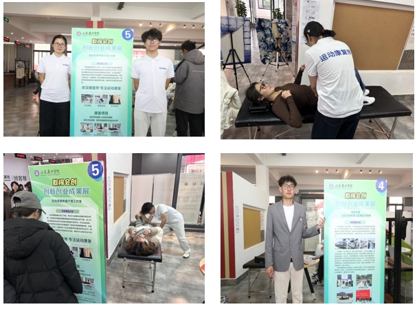音乐舞蹈学院重点展示了中国国际大学生创新大赛获奖作品《珈琲关爱-山区艺体教育公益事业引领者》和肌肉骨骼痛疼干预工作室的相关项目,现场学生踊跃感受肌肉放松、按摩等专业康复手法。