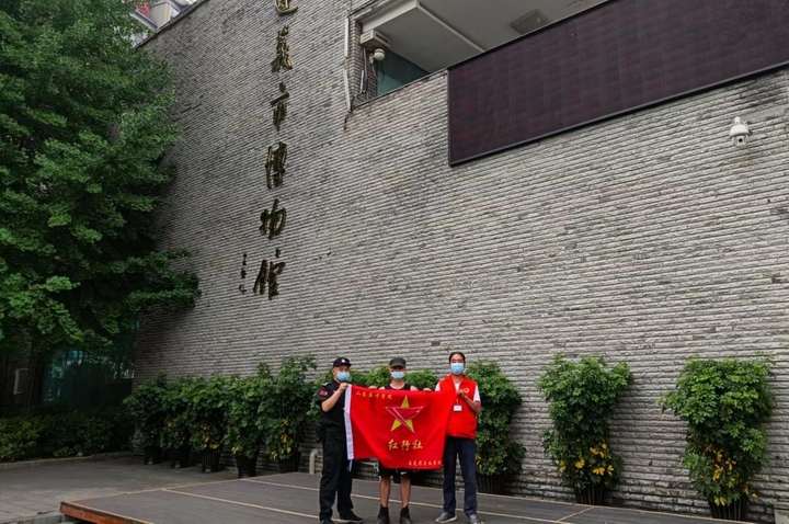 商仕杰在遵义市博物馆与志愿者、工作人员合影