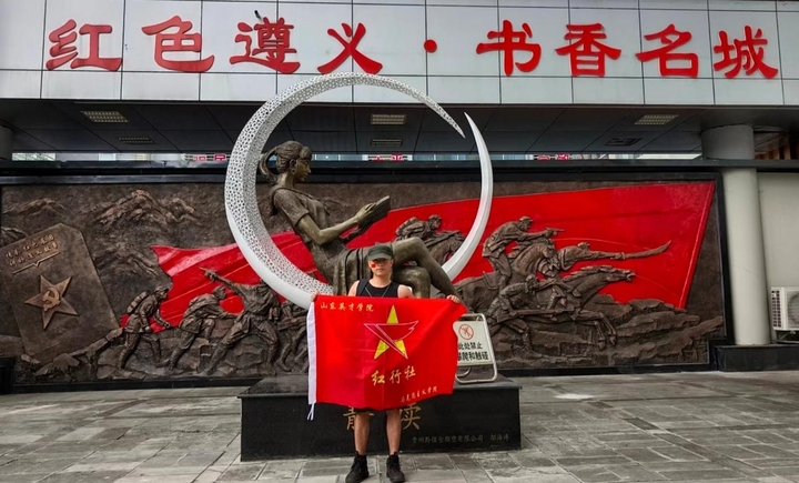 这其中,有一支特别的“队伍”:一人一包、一书一本、一面旗帜,怀揣一颗火红的心,从遵义会议旧址出发,历时6天,只身徒步100余公里,参观遵义会议旧址、翻越凤凰山山林、奔赴四渡赤水渡口,深刻感悟伟大长征精神,以新时代青年的实际行动迎接建党101周年。