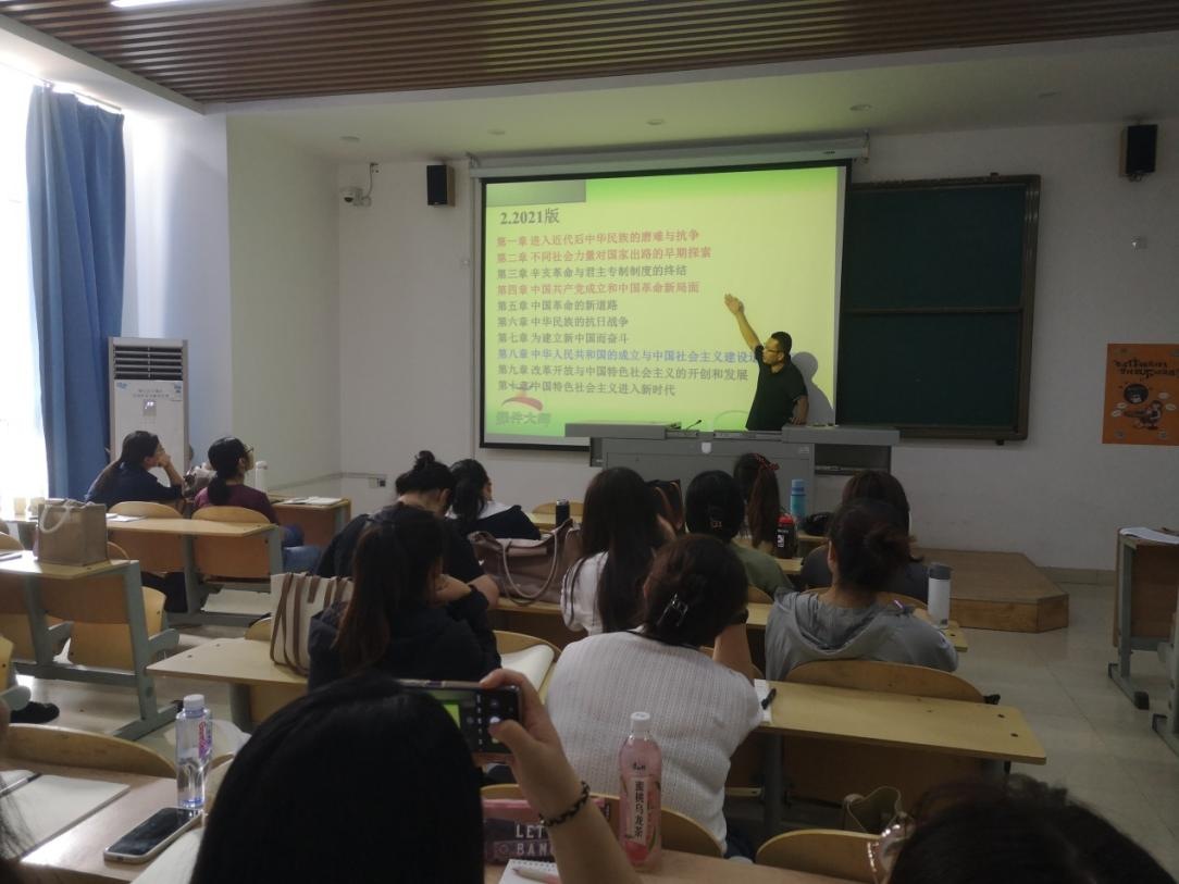 培训活动中,思政二教研室主任常志刚老师进行了教学经验方面的分享。他围绕中国近现代史纲要课程,为新聘教师们展示了如何上好一门高校思政课。常主任幽默诙谐的语言和深入浅出的授课方式使新聘教师们得到了极大的启迪,也直观地感受到了教学方式对教学效果的重要影响,一名好的思政教师应当凭借过硬的教学本领站稳讲台,进而因材施教,做到让学生对思政课程真心喜爱、终身受益。