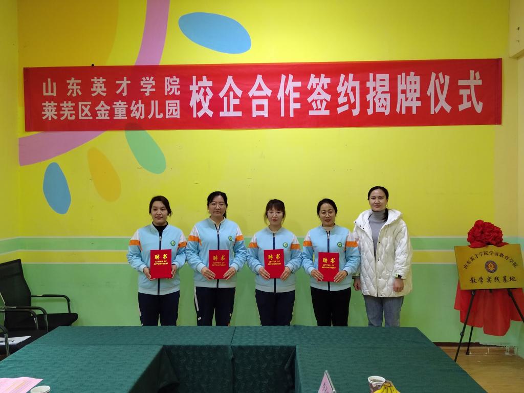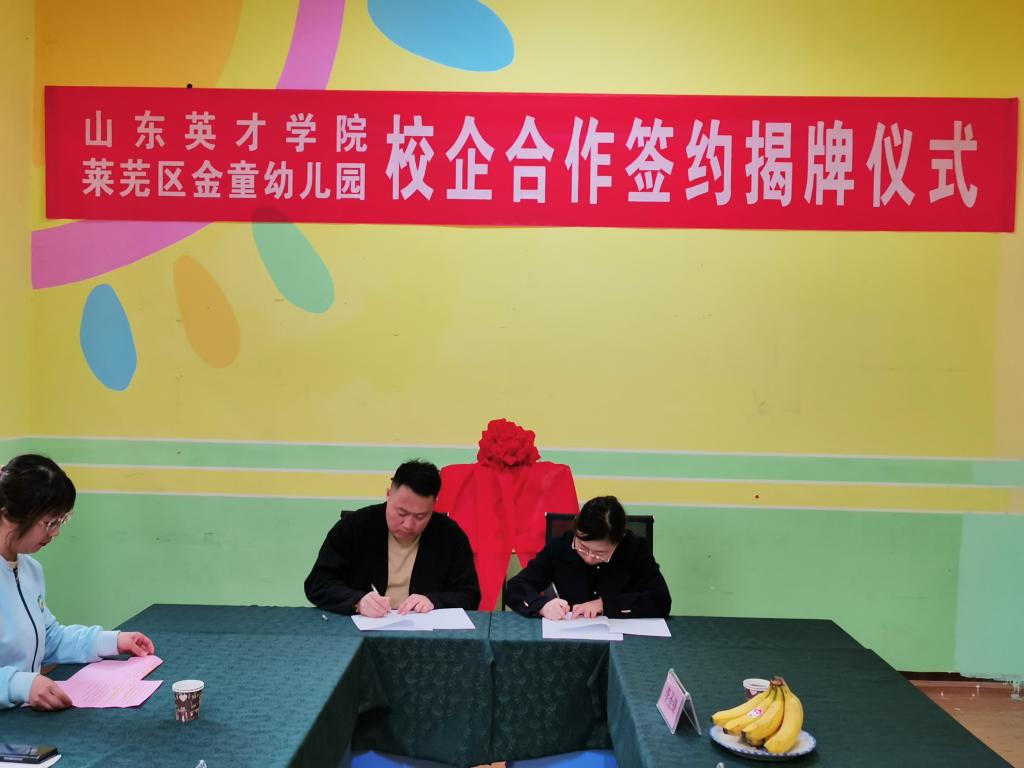 校企合作谋发展,合作共赢谱新篇,2023年2月23日,365英国上市网站官网与济南市莱芜区金童教育集团校企合作签约、实践基地揭牌仪式在莱芜区金童幼儿园如期举行。