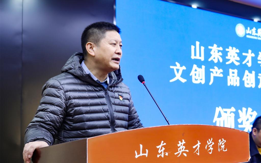 余文千主任做总结讲话,他用“创意、创新、创设”三个词、六个字,深入浅出地为大家讲解了校园文创应该如何开展,怎样开展。他鼓励学生要发动思维,有超前的眼光、有卓越的见识、有感知美的能力,不断深耕细作,勇于实践探索,感受齐鲁大地深厚的文化底蕴所带来的激情与灵感,描绘出黄河流域文化新时代印记,以泉为脉,打造出黄河文化IP。他希望同学们能够学好专业课知识,注重实践动手能力,多参加比赛,以赛促学,不断丰富自身阅历,用心、用情讲好英才新面貌、新形象、新发展,为建设高水平应用型大学做出应有的贡献。