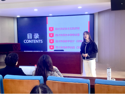 山东师范大学韩冰副教授首先对国才考试的理念、题型等进行了详细的介绍,她从校本实践历程、校本课程设置、教学设计和教学实践四个方面讲解了山东师范大学以国才考试为抓手,在产教融合、课证融通方面的一系列尝试和成果。她表示,山东师范大学自2018年引入国才考试后,通过开设国才英语课程、与外研社共建国才基地、拓展双师实践课程等手段,将国才融通教学评用,不仅帮助学生提前了解职场、收获真知,同时也提升了教师教学育人水平。