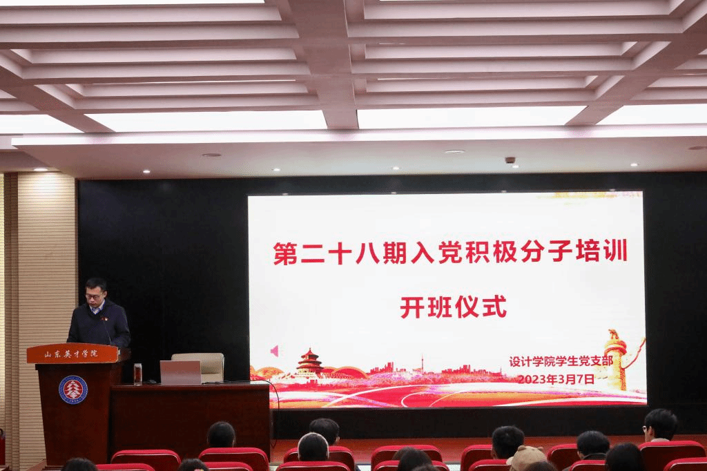3月19日在北校区学术报告厅举行第二十八期入党积极分子培训的开班仪式,设计学院党总支副书记冯俊建作重要讲话并给积极分子上了第一堂党课,主讲内容为《学好百年党史 凝聚奋进力量》。冯书记讲到在中华民族伟大复兴伟业中,青年人要不断锤炼自我、勇担责任,自觉把将自我成长融入到与党和人民的事业中。积极分子培训不仅是一次难得的学习机会,更是政治生活中的一件大事,大家要深刻认识它的重要意义。