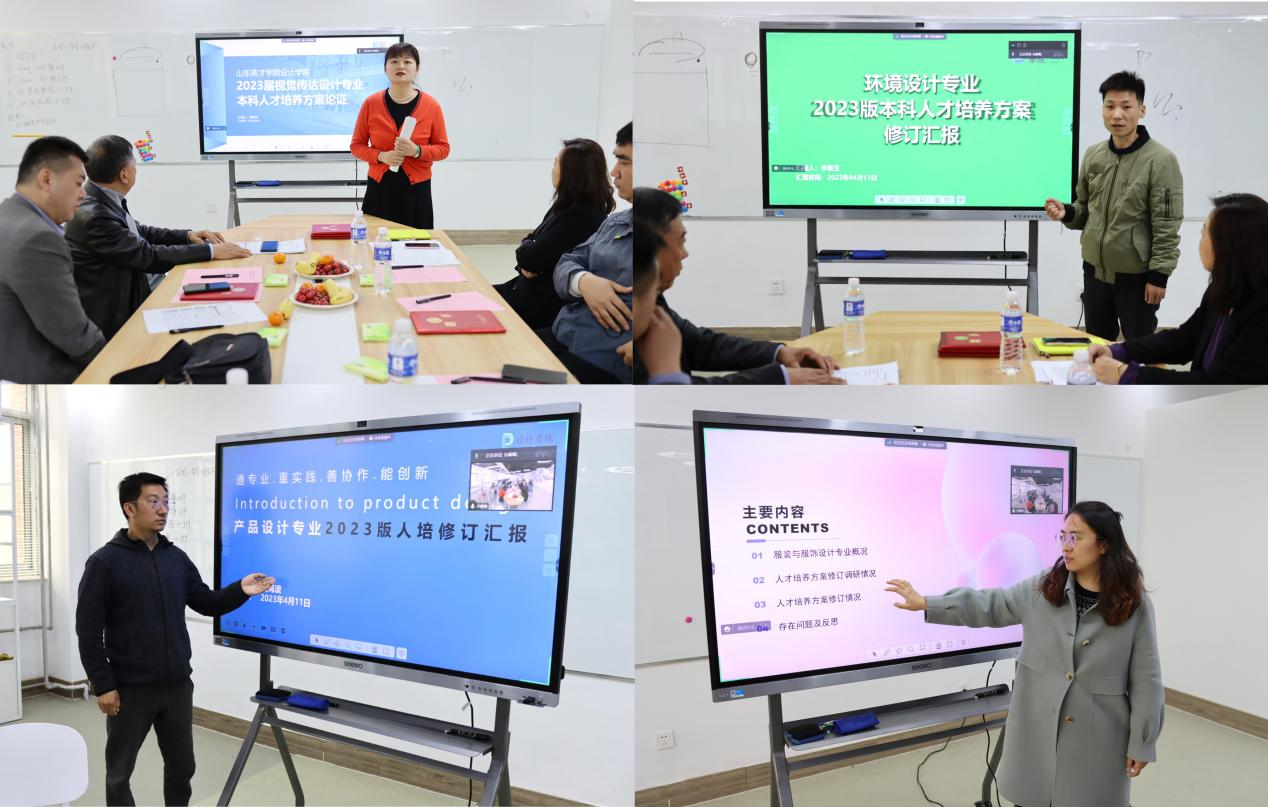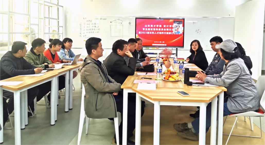 为进一步优化2023级设计学院本科专业人才培养方案,全面提升应用型设计人才培养质量。设计学院于4月11日在艺术楼206召开了2023版本科环境设计、视觉传达设计、产品设计、服装与服饰设计专业人才培养方案修订专家论证会。会议邀请了山东大学李克教授、山东工艺美术学院王智教授、赵刚教授,山东师范大学周长亮教授、山东建筑大学胡天君教授、齐鲁工业大学李军教授、长城梅地亚文化产业集团黄刚总经理、设计总监房磊,山东世亚装配建筑工程有限公司郑明总经理、工程师高阳等,设计学院院长周长积、副院长郝莹、各专业负责人及教研室骨干教师参加会议,会议由郝莹副院长主持。