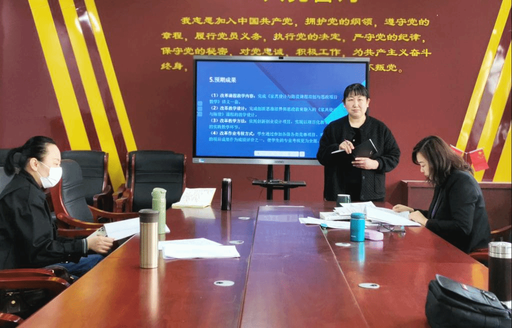 各课题负责人分别向专家组进行了开题汇报。李敏玉老师汇报课题《环境设计专业产学研多平台协同育人机制研究与实践》;郭芹老师汇报课题《图形创意课程思政教学建设与应用实践研究》;许艳青老师汇报课题《基于双创与思政教育融合的家具设计与陈设课程项目化教学研究》;朱小乐老师汇报课题《基于OBE成果导向的书籍设计课程教学改革与实践创新》;曹振鑫老师汇报课题《黄河文化融入高校美育课程教学内容研究》。