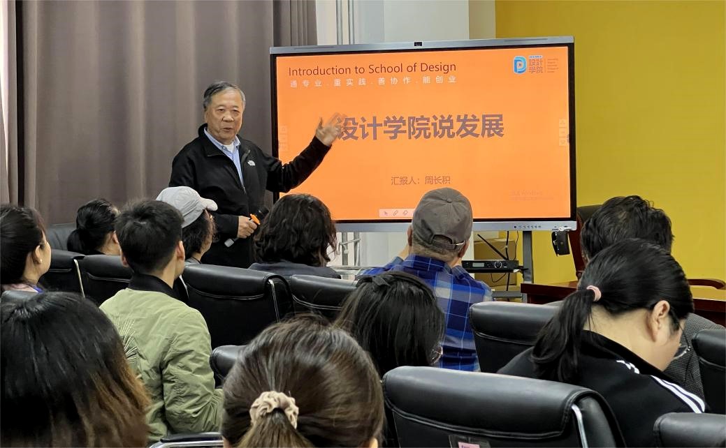 在院长“说发展”环节中,院长周长积、副院长郝莹围绕审核评估总体工作要求和安排,结合各自的分管工作进行了总结。人人了解评估、人人参与评估、人人都是评估对象。周院长从设计学院办学历史与概况、办学思路与目标定位、建设措施及成效、未来工作思路四个方面阐述了设计学院如何凝练并围绕特色专业进行发展的。郝院长结合审核评估目标任务要求,围绕人才培养及专业建设、实践教学、创新创业教育、教师队伍建设、教学质量保障、工作措施等方面进行教学。