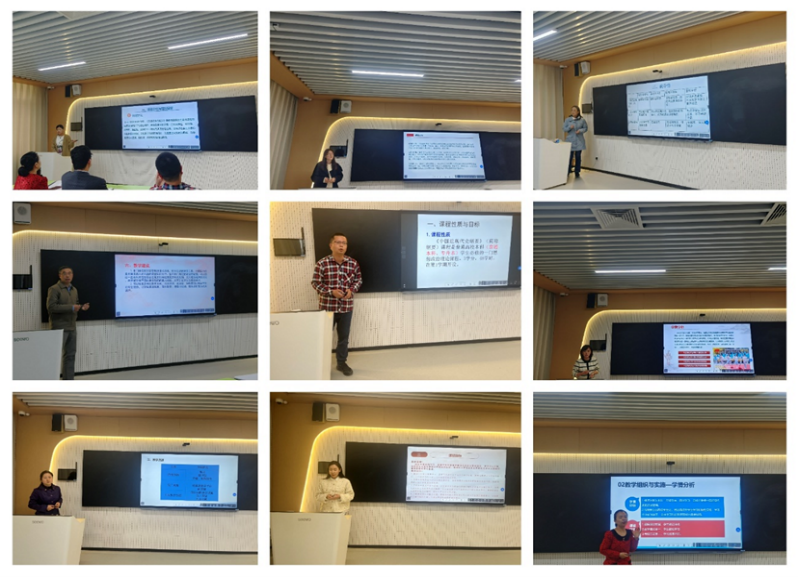 活动中,4位教研室主任带领5位青年教师分别从课程定位与课程目标、师资队伍、教学资源、教学组织与实施、教学评价与考核、教学效果与反馈、教学特色与亮点、下一步改革探索与展望等方面进行了生动说课。