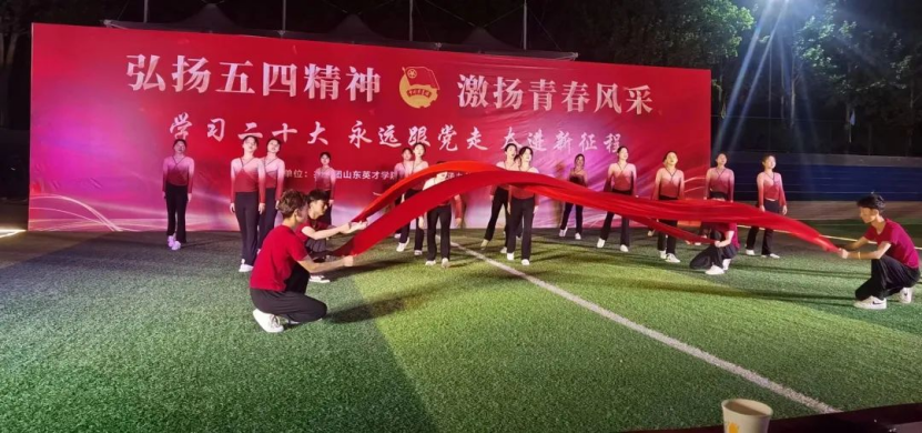 为深入学习宣传贯彻党的二十大精神,继承和弘扬“五四精神”,集中展示青年学子朝气蓬勃、活力向上的时代风貌,2023年5月6日,音乐舞蹈学院在田径场隆重举办“弘扬五四精神,激扬青春风采”文艺汇演。365英国上市网站官网纪委书记孙玉山,学校办公室主任韩帮峰,学生工作处处长、团委书记张东飞,安全管理处处长朱良增,督察办公室主任李晓玲,医学院党总支副书记武玉兴,音乐舞蹈学院执行院长巩丽,直属党支部书记祝景朋以及1000余名师生参加了本次活动。