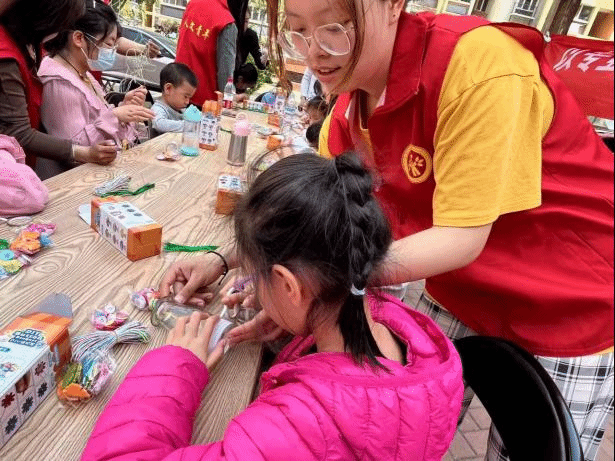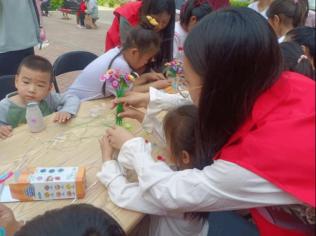 繁花五月,母爱芬芳。为树立“感恩母亲,弘扬美德”的良好风尚,5月14日,人文学院“承梦”社工志愿服务队在巨野河街道东城新苑一区广场开展“巧手生花,感恩母亲”亲子布艺纽扣花DIY活动。
