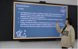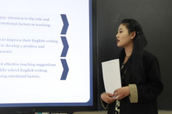 答辩流程分为学生现场英文陈述、教师提问、教师提出修改意见三个环节进行。学生从选题背景、研究过程、论文内容、创新点等方面进行英文陈述,评审教师们结合答辩学生汇报的研究思路和主要内容等方面逐一进行评议提问,并对论文中的不足之处提出了修改意见。根据答辩组教师的提问和建议,学生们也做了详细的回答和记录。