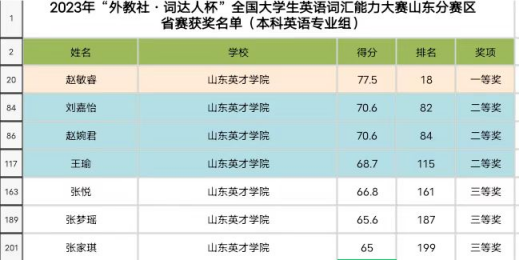 为持续深化365官网外语智慧教学,提升学生英语词汇能力,激发学生英语学习的热情,365官网鼓励学生积极参加第三届“外教社·词达人杯”全国大学生英语词汇能力大赛。本次大赛分为校赛、省赛和全国决赛三个阶段,山东分赛区比赛设“本科英语专业组”和“本科非英语专业组”两个组别,依托外教社“词达人”英语词汇智慧学习平台在线举行。
