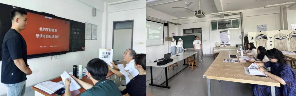 答辩开始前,各答辩组组长向参加答辩的毕业生明确答辩的具体要求与注意事项,随后参加答辩的毕业生按顺序依次进行答辩。答辩主要分为学生陈述、答辩导师提问、学生回答三个环节。在答辩过程中,各专业学生精心准备答辩汇报材料,以饱满的热情、认真的状态展示了自己的专业能力,他们以PPT的形式围绕着毕业设计选题的目的和意义、研究内容和方法、主要观点、创新与不足等方面进行了自述。答辩导师们秉持着严谨细致、认真负责的态度,从设计的选题、设计理念、作品完成度等方面进行了全面评审并进行了提问、评分与指导。答辩全过程组织规范,学生们态度认真,“答”与“辩”互动进行,为四年的学习画下了浓墨重彩的一笔。