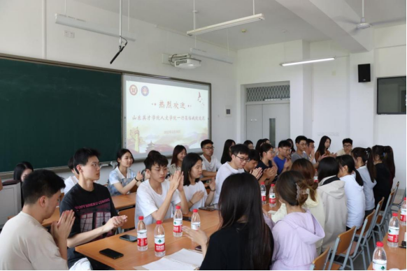 山东财经大学金融学院团委书记郭夕熙对人文学院师生表示欢迎,并对工作重点以及学生会的基本情况进行介绍,从金融学院的基础团务工作、学生活动、学生会的定位和职能、组织架构以及年终评价考核制度、方面进行介绍。