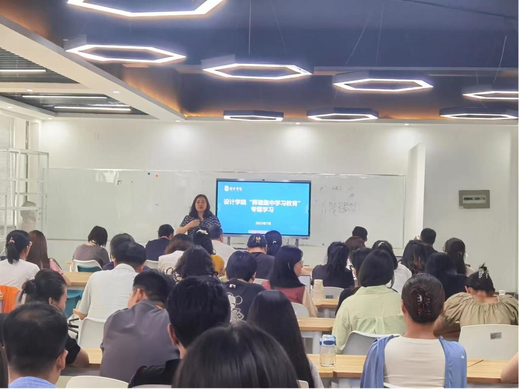 为加强本校师风建设,明确教师职业道德规范,使敦品立德内化为教师的价值追求,外化为行动自觉,有效提升教师的思想水平与道德素养。以良好的政治素养、高尚的道德品质、精湛的业务能力,助力教师行业的发展,为国家培养更多德智体美劳全面发展的高素质人才。7月19日,设计学院开展师德师风集中学习教育活动。设计学院院长周长积、教学副院长郝莹、各系主任、专业负责人和学院全体教师参与培训,会议由院长周长积主持。