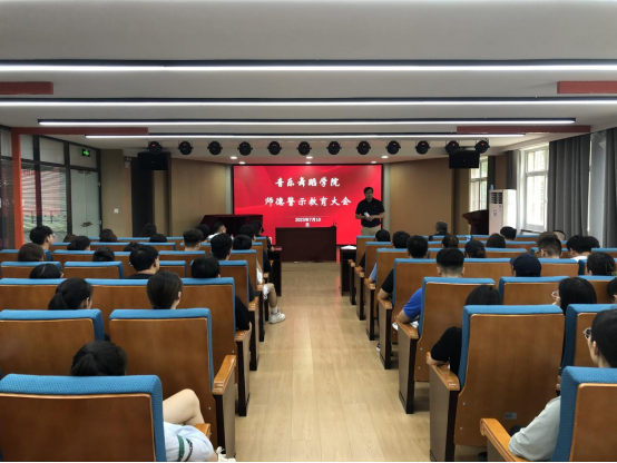 在学院师德警示教育大会上,学院院长吴可畏带领全体教职员工对《习近平总书记关于师德师风的重要论述摘编》《师德规范》等师德集中教育学习手册中的内容进行了全面宣讲。吴院长强调,要坚持把师德师风作为评价教师队伍素质的第一标准,坚持正确的政治方向,树立底线意识,全方位规范教师自身行为。吴院长还特别强调了在课堂教学、师生关系、学术研究、社会活动等方面出现的违反教师职业行为的典型案例,希望全体教师以案为鉴、以案明纪。吴院长指出,作为一名大学教师要牢固树立身份意识、敬畏意识和大局意识,要始终坚守职业道德,维护人民教师良好形象。