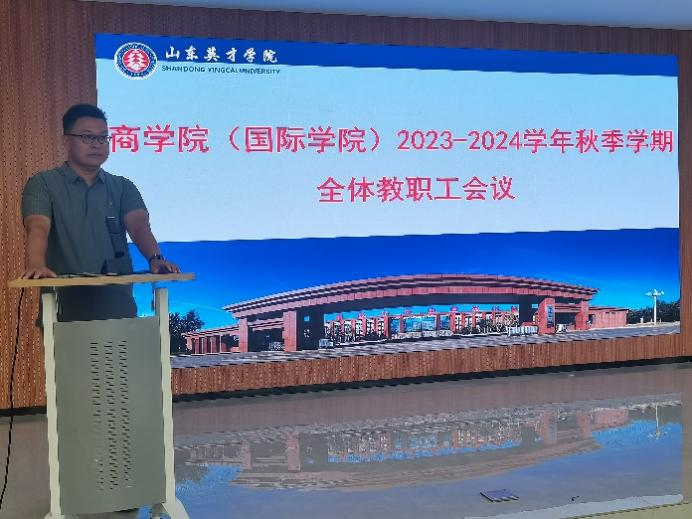 为顺利迎接教育部教育教学审核评估,推进新学期学院建设、教育教学等各项工作,8月29日下午,商学院(国际学院)在商学院学术报告厅召开了全体教职工大会,党总支书记、院长赵坤主持会议,党总支副书记徐宜慧,教学副院长殷永生出席会议并做工作部署。