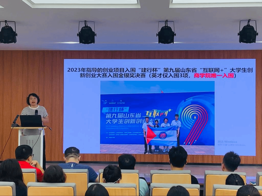 王素玲老师以“敢闯,敢创,共创精彩”为主题,从创新创业的比赛类型,参赛渠道等方面做了详细的说明,并以自己实际经历为案例,介绍了参赛队伍组建、屡次获奖与赛事激励等相关事宜,激发了新老师对创新创业项目的兴趣,推动商学院创新创业教育实现从“小众”到“大众”的转变。