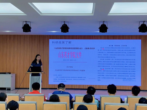 韩文静老师以“正确认识教科研”为主题,为老师们详细地解读了科研相关政策,以及申请科研的相关流程,使得新教师们对教科研有了系统的认识。培训内容清晰明了,切合需求,对提高新教师教科研能力、激发科研热情具有重要推动作用。