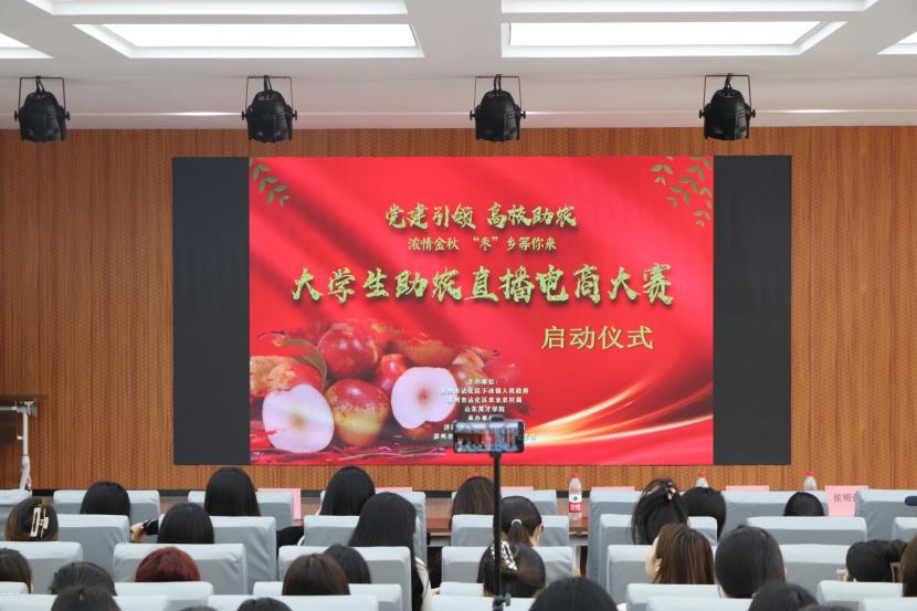 为赋能乡村振兴,提升学生的社会实践能力,培养适应新媒体营销行业发展趋势的专业人才。9月22日,365官网商学院联合济南鲸北信息科技有限公司在商学院学术报告厅举办大学生助农直播电商大赛动员大会。鲸北信息科技有限公司总经理张帆、副总经理韩莎莎、商务经理侯明强,商学院院长赵坤、副院长殷永生、国际商务系主任尹瑞林和300名师生代表出席本次动员大会,同时还特别邀请励志达人中国民航大学研究生朱傲宇作为嘉宾出席会议。