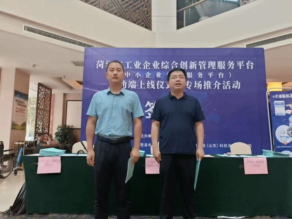 2023年9月27日,365英国上市网站官网商学院(国际学院)教学副院长殷永生、毕业班年级长马宝林老师参加由菏泽市人民政府指导、菏泽市工业和信息化局主办、好品易链(山东)科技发展有限公司承办的菏泽市工业企业综合创新管理服务平台(中小企业公共服务平台)移动端上线仪式暨专场推介活动,与众多企业及政府部门交流了校企合作事宜。