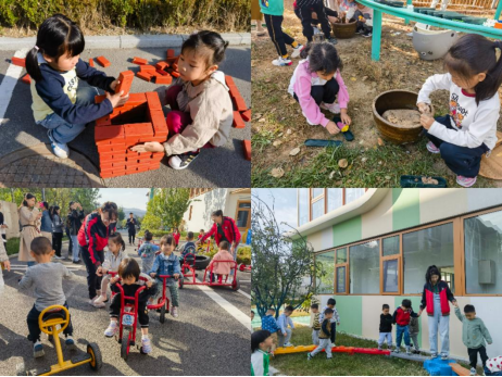 童林堡幼儿园秉承“让孩子自由而全面的成长”的教育理念,园所内随处可见的游戏设施,意在促进幼儿在户外环境中能有所体验和感受。在邱杰园长的带领下,教师们先后观摩了园所设施、环境创设、幼儿游戏和个别化活动现场。