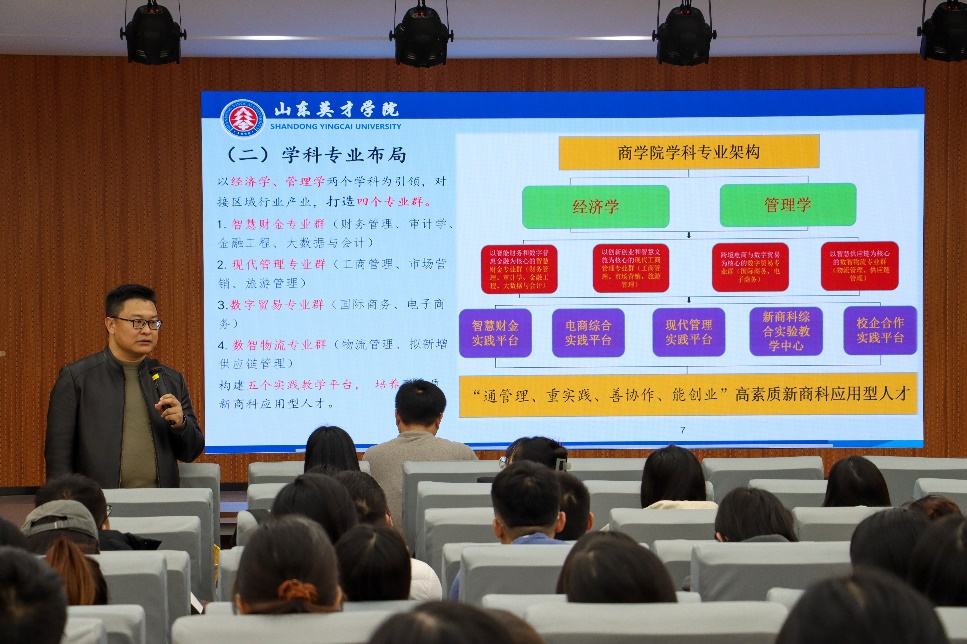 为进一步贯彻落实学校有关本科教育教学审核评估工作的相关部署和要求,扎实做好新一轮本科教育教学审核评估工作。11月14日下午,商学院(国际学院)于明德楼学术报告厅举办了本科教育教学评估专项研讨会。商学院(国际学院)党总支书记、院长赵坤主持,教学副院长殷永生,党总支副书记徐宜慧出席会议,商学院(国际学院)全体教职工参加会议。