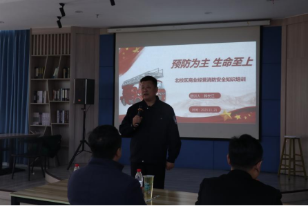 为进一步加强校园安全工作,提高经营业户工作人员的安全防范意识和识灾、救灾、自救、自护的能力,切实保护广大师生的人身安全。11月21日下午14:00,北校区综合办公室组织开展经营业户消防安全知识培训暨应急疏散逃生演练活动,北校区综合办公室主任高奎、副主任张中凯及餐厅、超市、物业等120余人参加了此次培训演练。本次活动由北校区综合办公室副主任张中凯主持。
