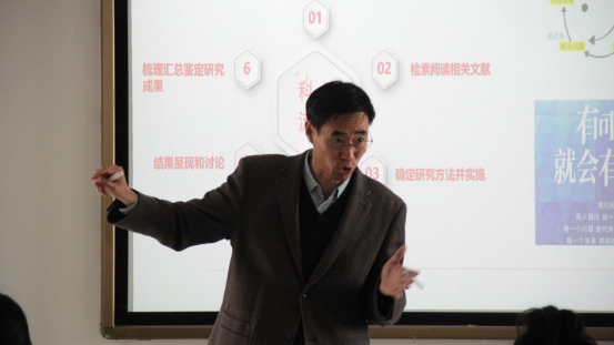 讲座中,樊家进老师还给同学们传授了一些团队交流的小技巧,并鼓励同学们在课题研究的过程中多观察、勤思考、多留心、勤查阅,为以后的课题研究和论文写作打下基础。
