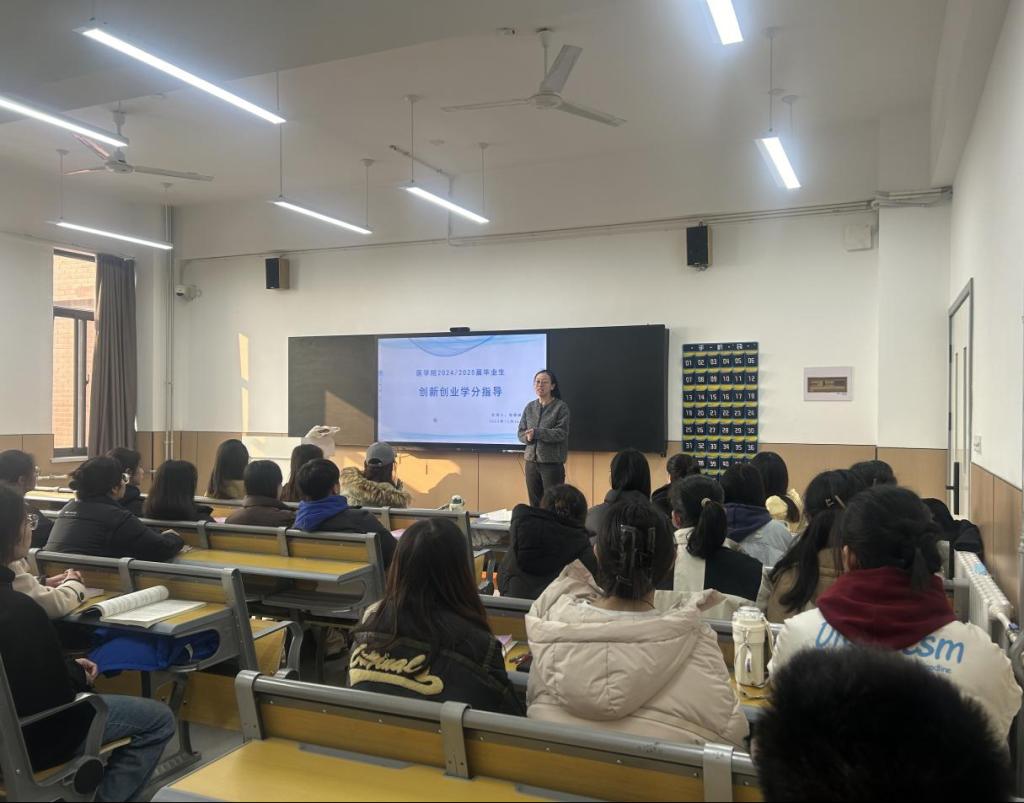 创新创业学分是全日制在校生素质拓展模块必修环节,为了帮助同学们了解创新创业学分的相关事项以及认定范围与标准,医学院于12月26日开展了以“引领学生探索创新之路”为主题的创新创业学分指导讲座。2024及2025届毕业班的学生代表参加,由医学院张婷婷老师主讲。