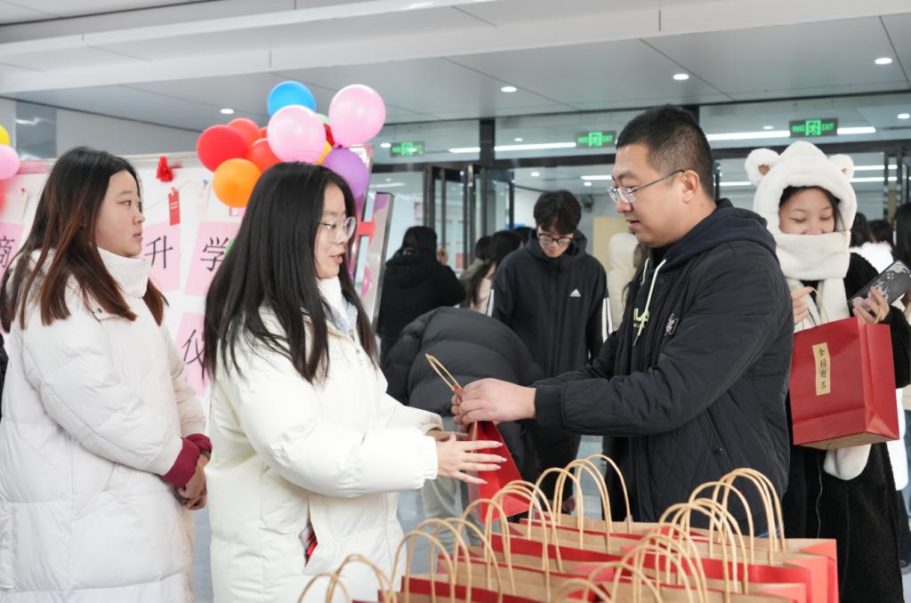 老师们为学生代表分发礼品,鼓励同学们积极备考期末考试,用心准备未来升学考试。同学们也在心愿墙上立下目标,最后预祝同学们在未来升学的道路上,金榜题名,前程似锦。