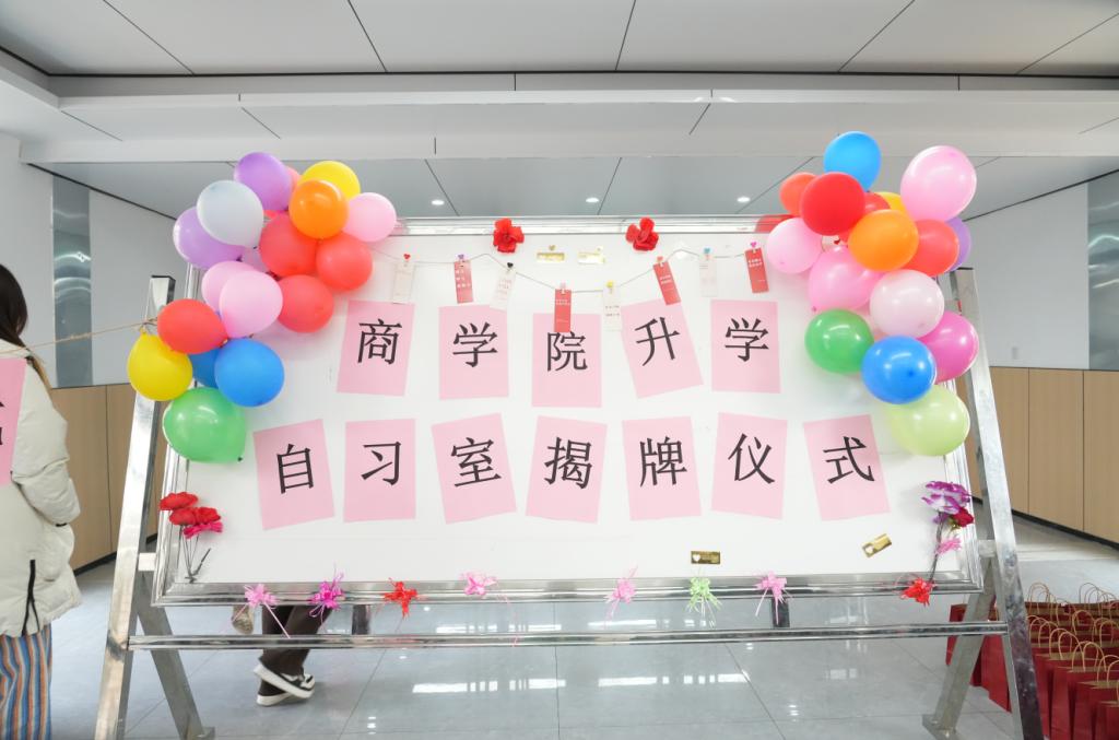 为满足学生对自习场所的需求,落实学院学风建设的相关要求,在即将迎来期末考试之际,商学院(国际学院)于2023年12月26日在3、4号公寓连廊召开商学院(国际学院)升学自习室揭牌仪式。出席本次仪式的有商学院(国际学院)党总支副书记徐宜慧、团委书记李帅、年级长马宝林及学生代表。