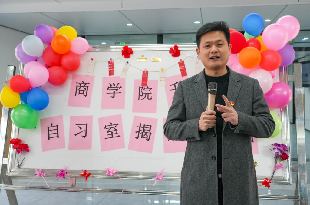 商学院(国际学院)党总支副书记徐宜慧在发言中表示,自习室的开设,方便了同学们的个性化学习需要,营造了浓厚的生活区学习氛围。升学自习室是我院为改善学生学习条件而采取的又一项新举措,也将成为发挥学生宿舍育人功能的有力抓手。希望同学们能够珍惜利用这份资源,为今后的升学工作添砖加瓦。