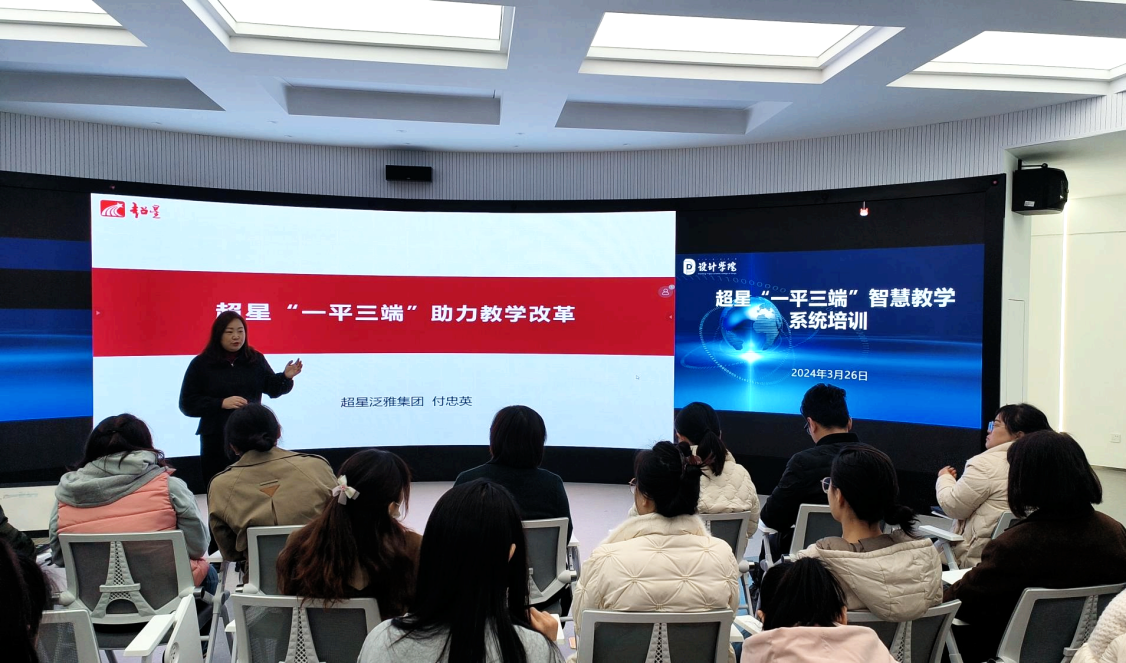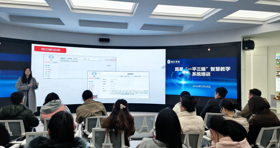为进一步加强学院教师信息化教学水平,提升教学效果,智教赋能课堂,助力教学改革。3月26日,我院在设计楼虚拟仿真综合实训室开展了“超星一平三端”智慧教学专项培训活动。此次培训邀请了超星集团培技术专家付忠英,详细介绍了如何更好地利用“超星平台”开展教学活动。学院副院长郝莹、各专业负责人,专业教师参加培训。