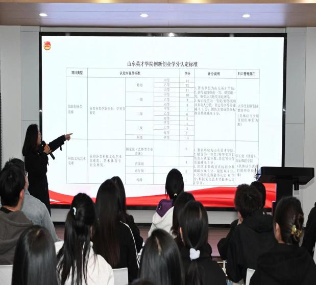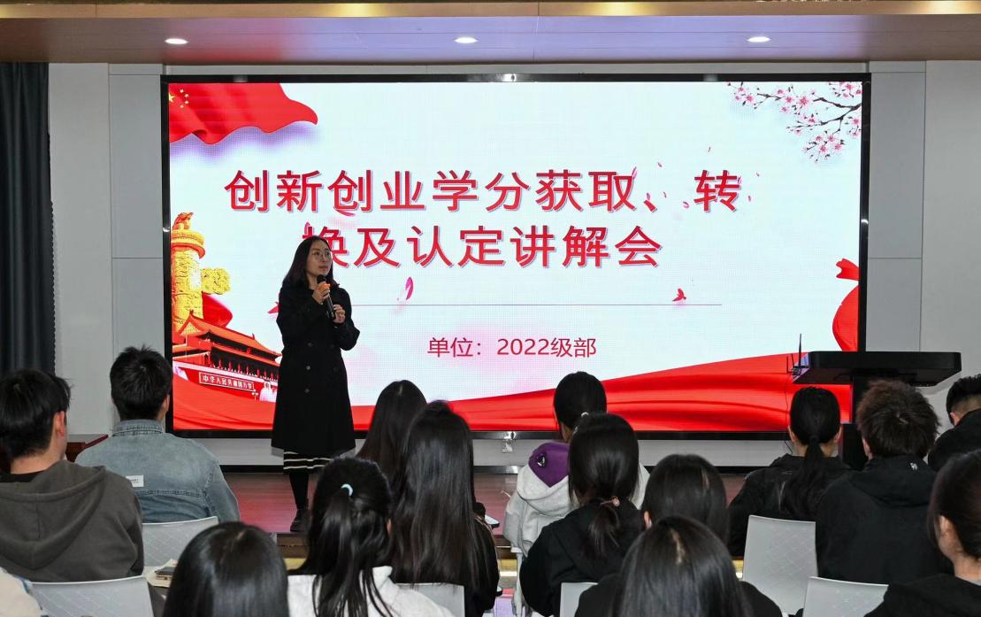 此次培训会议由王莹莹老师主持,王老师就创新创业学分认定的相关政策、标准、学分认定程序和学分认定项目进行了详细解读和说明。同时强调了创新创业实践学分在人才培养方案中的重要地位,鼓励同学们积极参与各类创新创业活动,争取更多的学分认定。