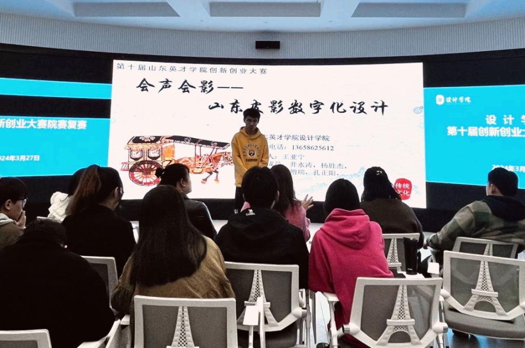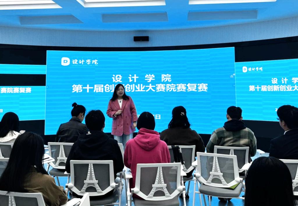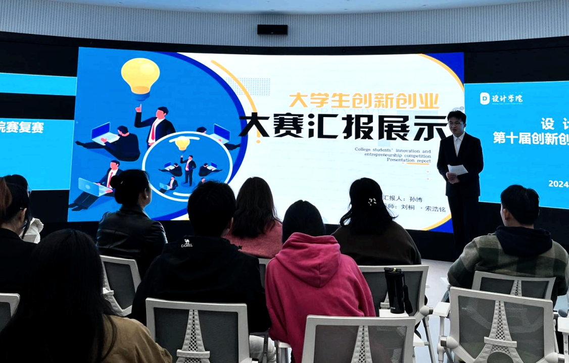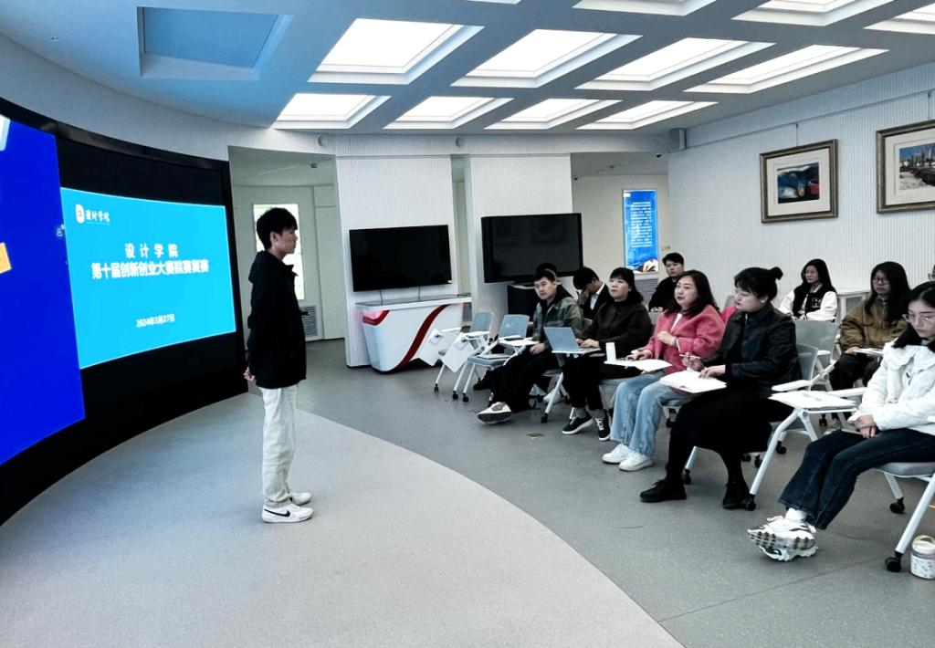 为进一步提升设计学院创新创业教育水平,培养学生的创新创业意识,提高创新创业能力,3月27日,设计学院举办第十届创新创业大赛院赛复赛。教学副院长郝莹、各系主任、院级督导等出席大赛答辩现场并担任本次比赛评委。副院长郝莹主持本次院赛答辩。